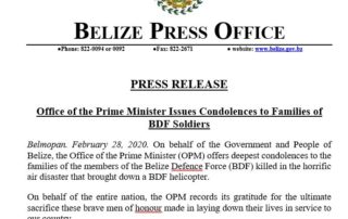 On behalf of the Government and People of Belize, the Office of the Prime Minister (OPM) offers deepest condolences to the families of the members of the [...]