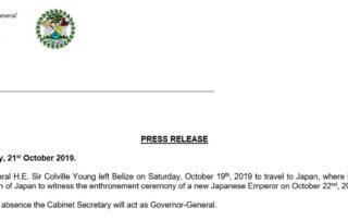 The Governor-General H.E. Sir Colville Young left Belize on Saturday, October 19th, 2019 to travel to Japan, where he will join heads of state at the invitation [...]